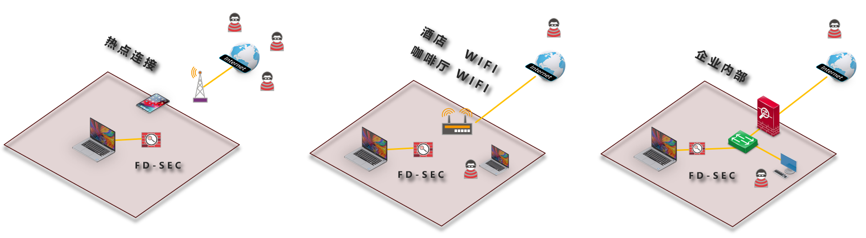 如果您在出差?笔记本可能需要连接酒店网络、可能会连接咖啡店网络、连接外部单位网络、也可能需要连接手机热点等多种复杂公共网络环境,此时会面临各类未知威胁.